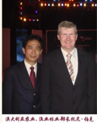 澳大利亚农业、渔业、林业部长托尼。泊克先生与世界华商总会主席陈文铸先生留影