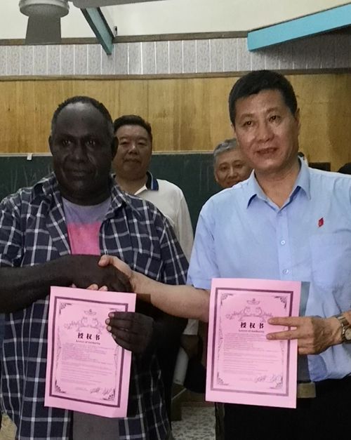 本会常务副主席李英明教授与布干维尔自治区(妥罗门联合酋长国)革命军总司令Senator Sam先生留影