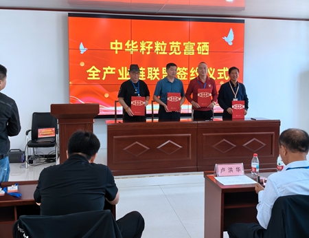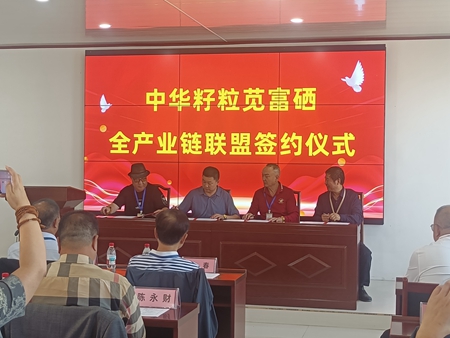 中华籽粒苋富硒全产业链联盟签约仪式同期进行。当天众多领导、嘉宾应邀参加仪式,致辞、签约并合影留念。